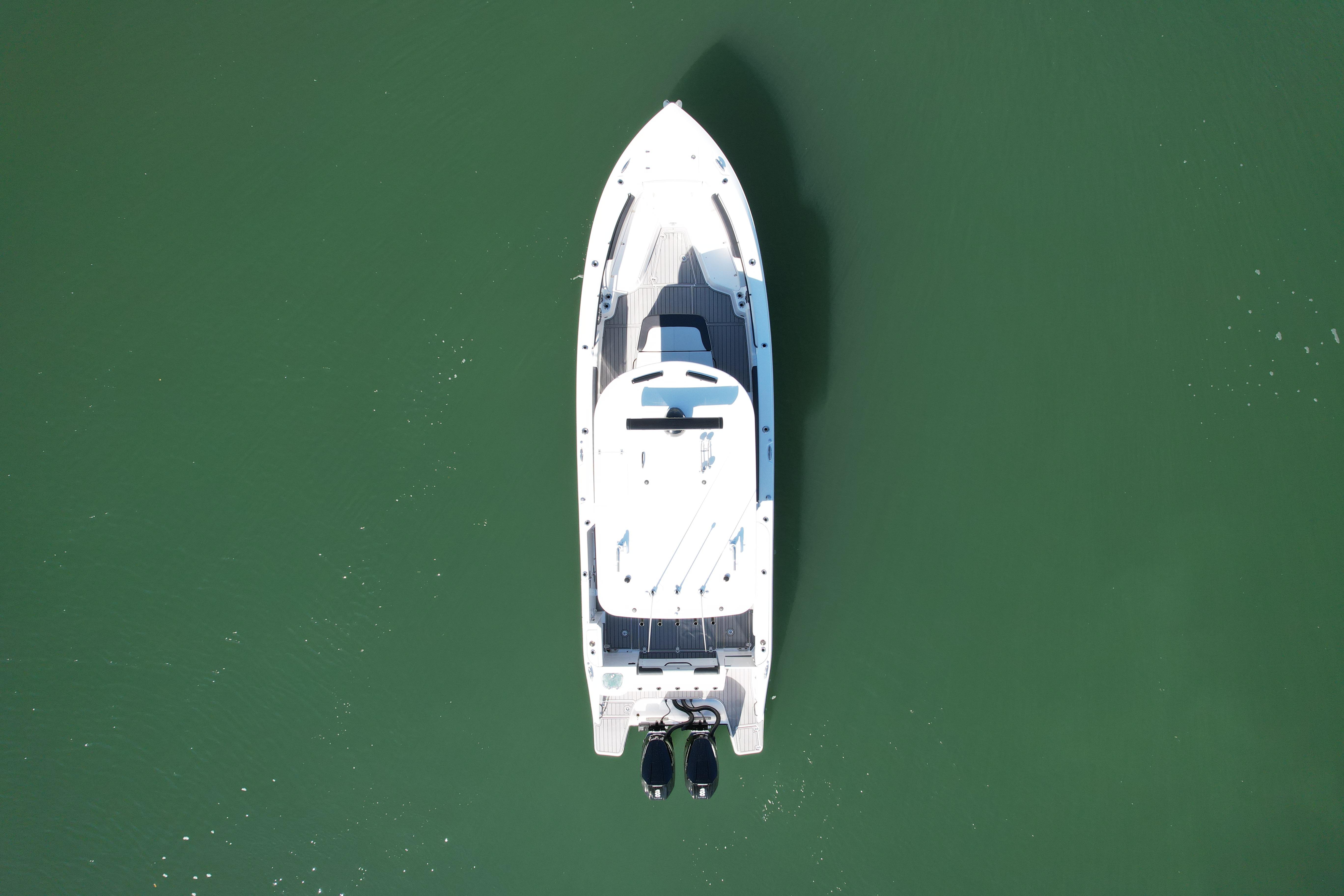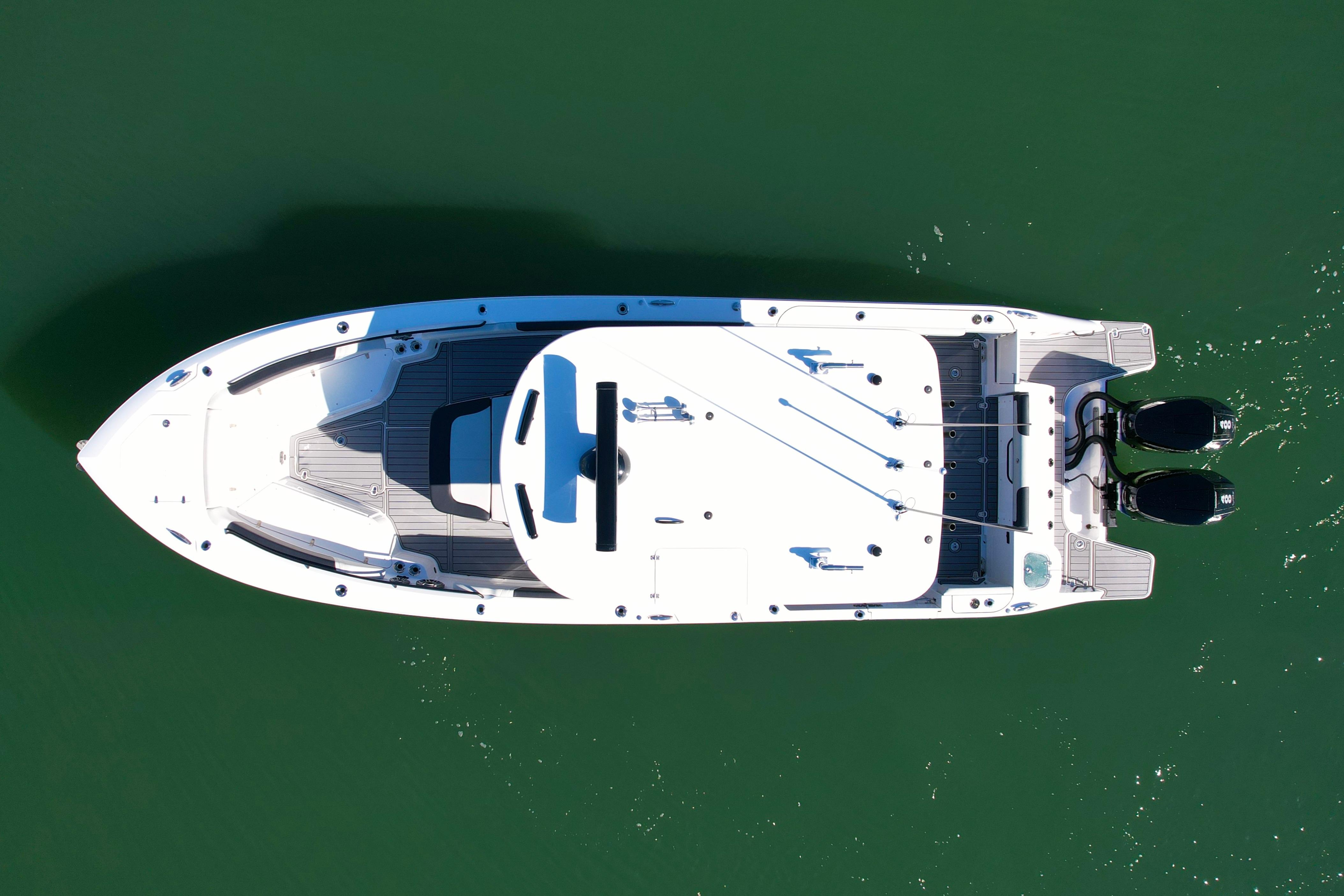 Powered by twin Mercury 400 Verado V10 outboards in black, equipped with full joystick maneuverability, this boat offers effortless docking, precise handling, and exhilarating offshore performance. The layout blends tournament-grade fishing equipment with premium cruising comforts, including an upgraded bow comfort package, full SeaDek in slate grey/black, and a high-end Fusion/JL Audio system.